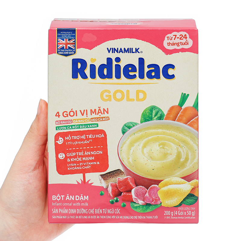 Sản phẩm liên quan: bột ăn dặm Ridielac 4 gói vị mặn, bột ăn dặm Ridielac gà rau củ, bột ăn dặm Nestlé
