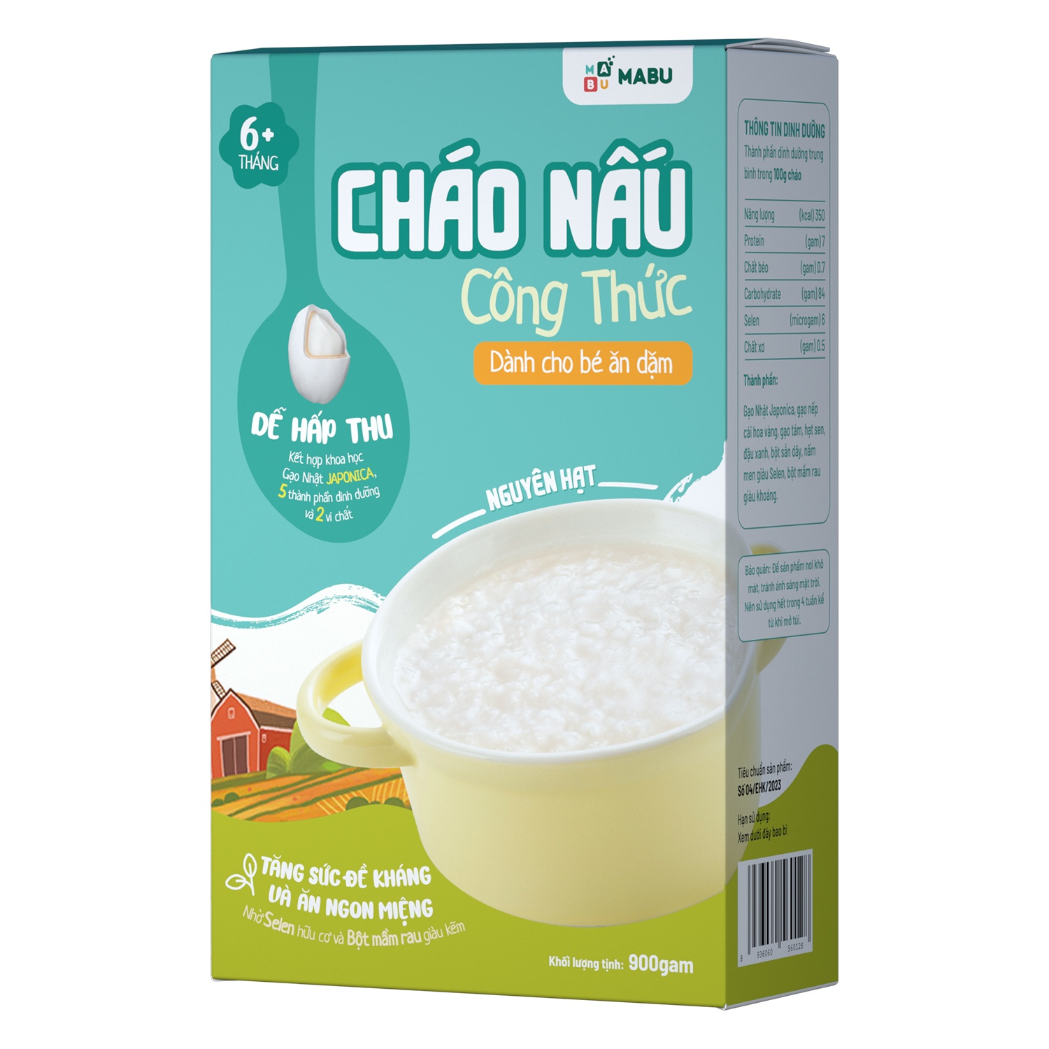 – Cháo nguyên hạt Mabu 900g Tăng cường sức đề kháng nhờ bổ sung vi chất Selen hữu cơ từ nấm men. Kích thích vị giác nhờ bổ sung vi chất Kẽm từ bột mầm rau. Vi chất có trong cháo Mabu nguyên hạt đáp ứng đủ nhu cầu tối thiểu của trẻ, giúp trẻ tránh được nguy cơ thiếu vi chất.
