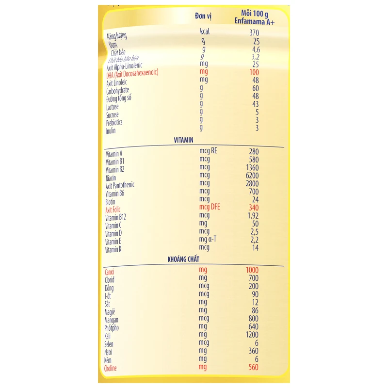 Thành phần dinh dưỡng cấu thành sữa bầu Enfamama A+ Vanilla 400g