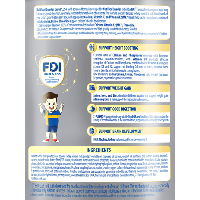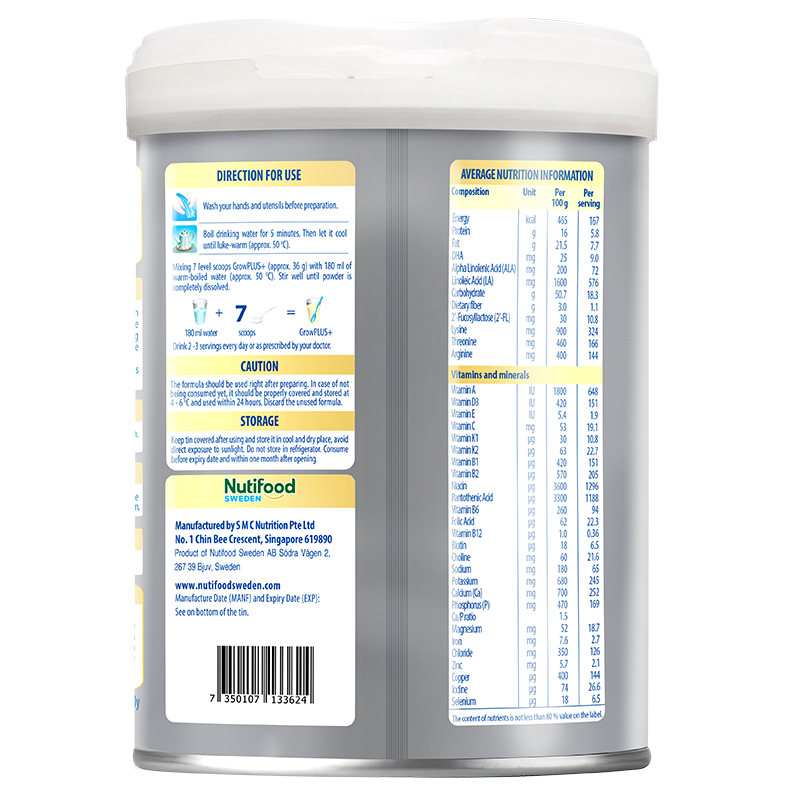 Sản phẩm được sản xuất tại Singapore dưới sự giám sát và tiêu chuẩn chất lượng cao nghiêm ngặt của Viện nghiên cứu dinh dưỡng Nutifood Thụy Điển.