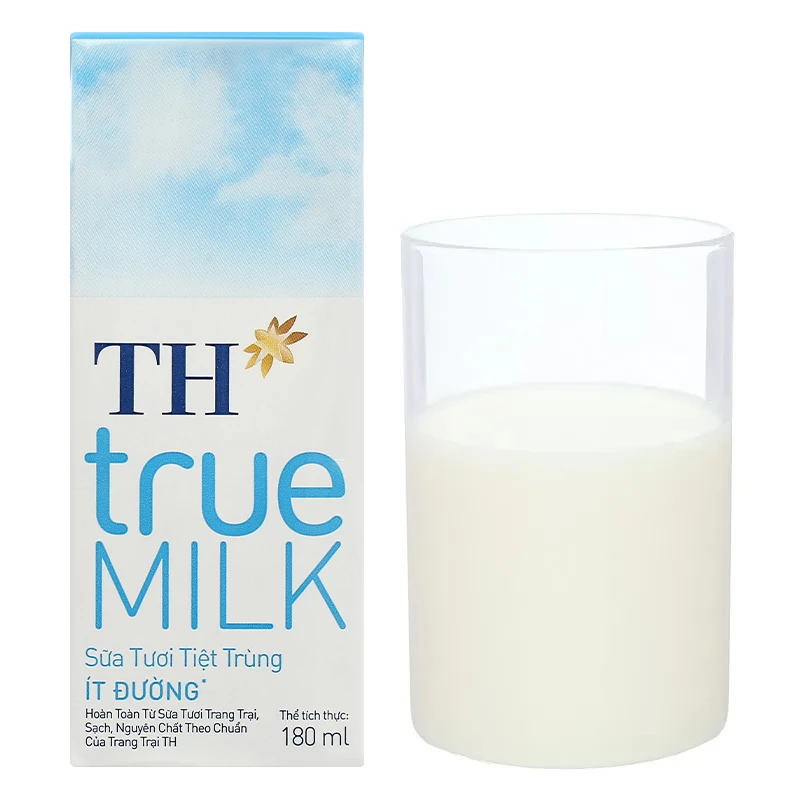 - Sữa tươi với hương vị thanh đạm, không quá ngọt và thơm nhẹ, nguồn sữa tươi sạch hoàn toàn đến từ các trang trại bò sữa của TH, đảm bảo không sử dụng hương liệu và chất bảo quản.