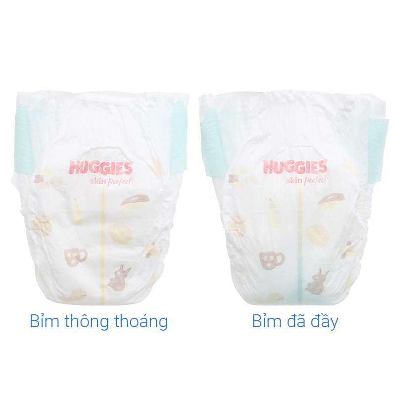 - Tã dán Huggies Skin Perfect size NB 70 + 6 miếng (Dưới 5 kg) nổi bật với dung lượng tã lớn, có thể thấm hút xuyên đêm đến 12 giờ giúp bé ngủ ngon giấc.
